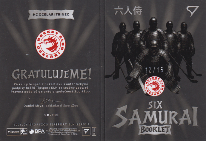 Kacetl Adámek Marinčin Flynn Nestrašil Růžička 25-26 Tipsport Extraliga Six Samurai Booklet #SB-TRI